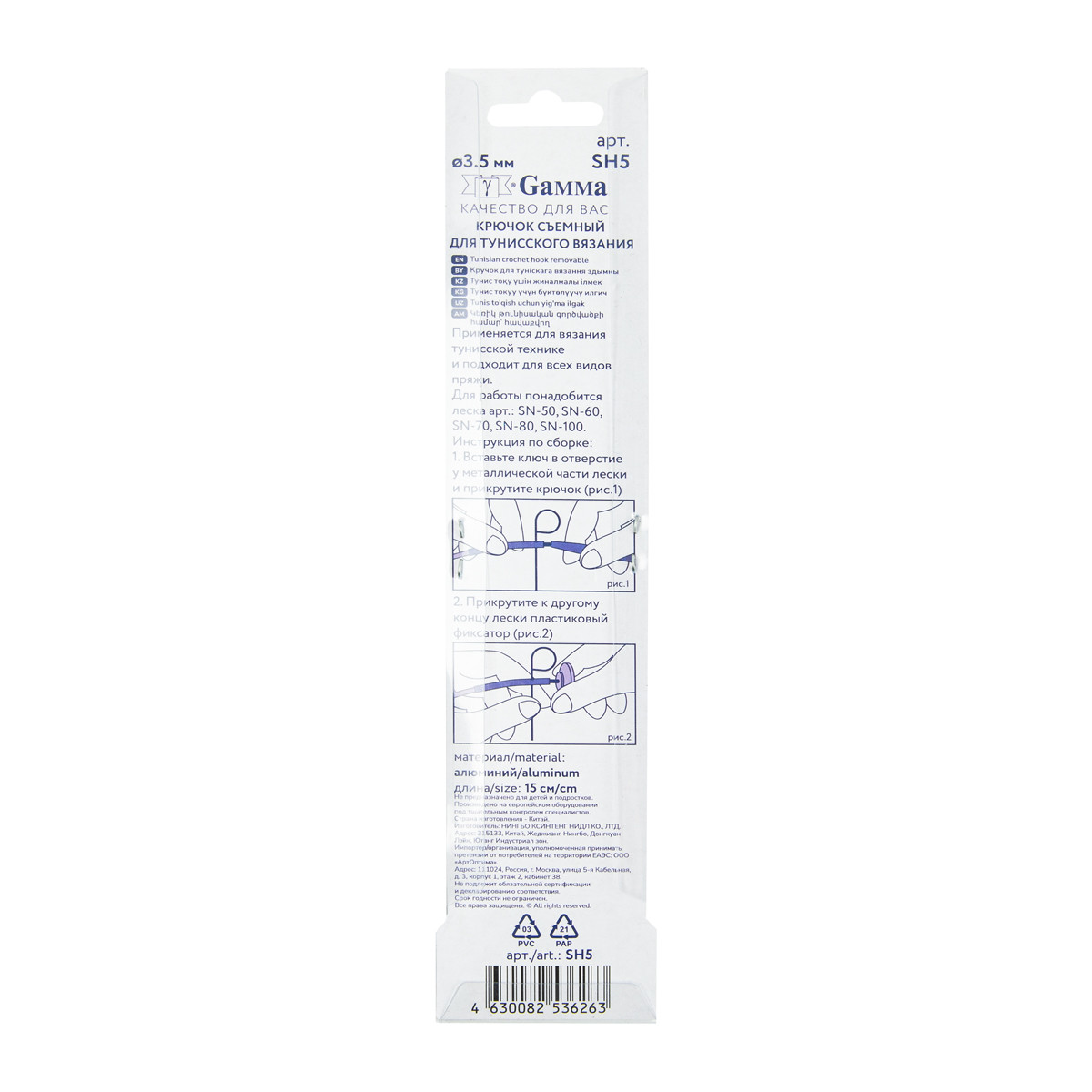 Для вязания " Gamma" SH5 крючок тунисский съемный алюминий d 3. 5 мм 15 см в блистере .