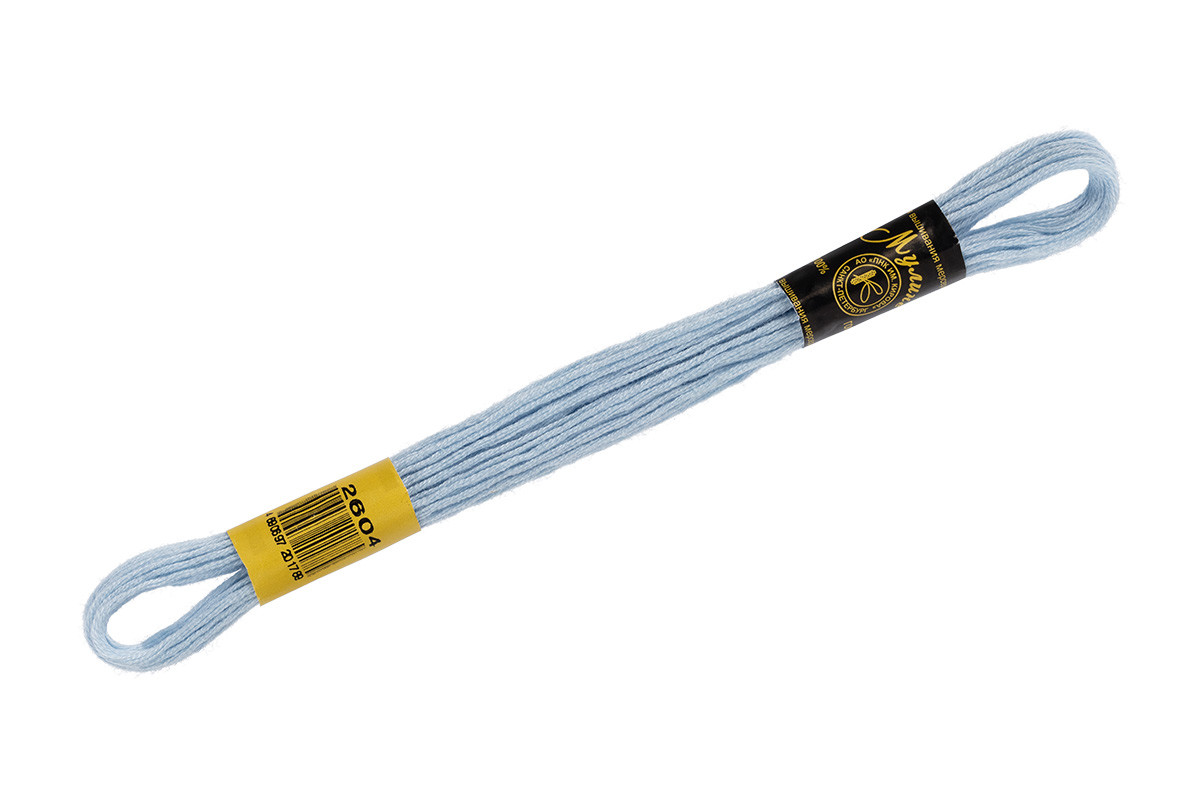 Нитки для вышивания "ПНК им. Кирова" мулине 100% мерсеризованный хлопок 8 м №2604 св.голубой